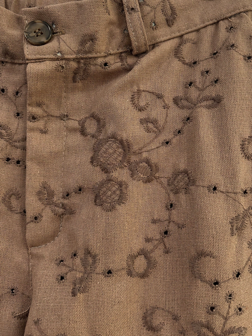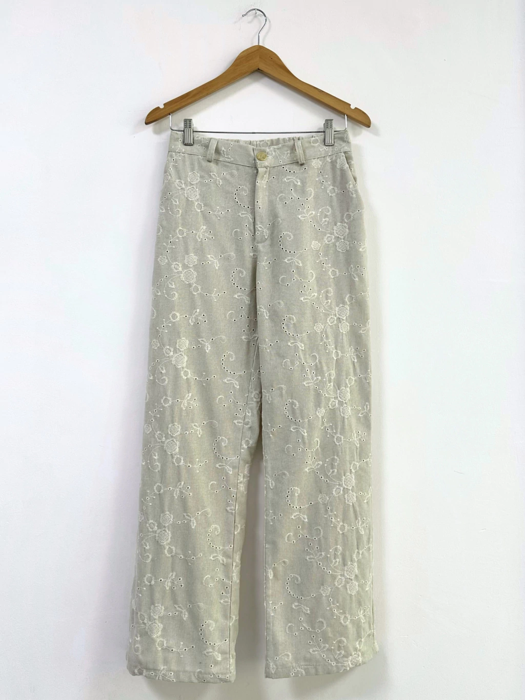 Pant recto, con pinzas en espalda para darle entalle a la cadera y tambien con elastico para mejorar calce. Lleva bolsillos laterales.